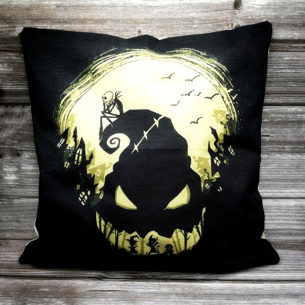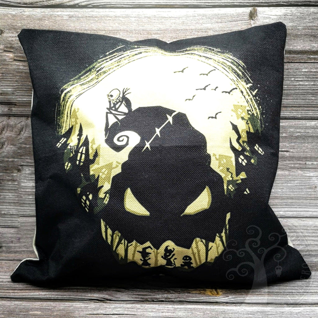Cuscino 45 x 45 cm ispirato al mondo di nightmare before christmas.