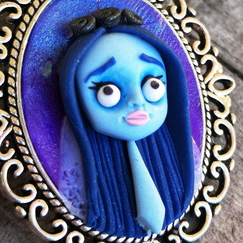 Collana Emily, piccolo ciondolo ispirato al film La sposa Cadavere, fanart realizzata a mano in paste polimeriche